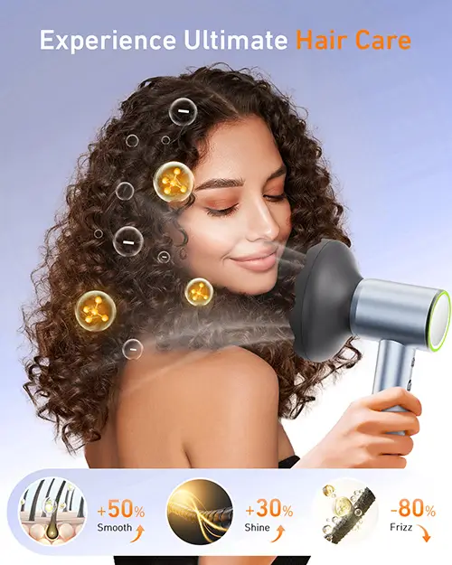 200 Million Negative Ions: Reduces static and frizz, leaving your hair smooth and shiny.